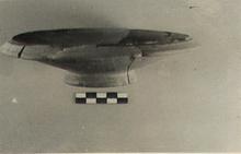| Description: | Broken and lacking part of one side. Restored in plaster. Heavy base ring, slightly flaring; flaring, down-turned rim. Buff clay. Traces of stacking on the floor. | |