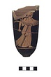 | Description: | Two joining fragments preserve most of body; broken off at base and shoulder. Surface scratched. Rounded at base, widening toward shoulder. Reserved band below shoulder with maeander on white ground. Athena Promachos striding right, on reserved groundline, added white on helmet. Fine orange fabric. Good shiny black glaze, cloudy on one side. | |