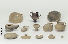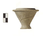 | Description: | Pyre lekanis. Mended from three fragments. Complete. Deep conical form. Flaring base with string marks underneath. Wide flange, incurved. Pale buff-orange fabric. Base for lid P 33600. | |