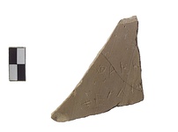 | Description: | Mended from two fragments. Single wall fragment broken all around. Unglazed. Inscribed on two lines ΘΡΕΑ[ΡΙΟΣ] ΘΕΜΙΣ[ΘΟΚΛΕΣ]. <graphic> Hard pinkish fabric with some inclusions. Joins with P32546, joined February 2005. | |