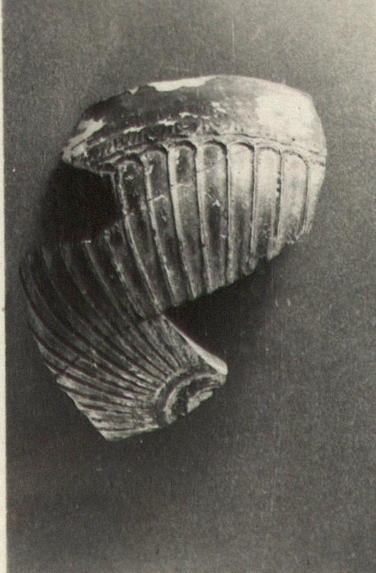 | Description: | Only a small segment remains. In the medallion a rosette; from it spring elongated petals; the upper zone is a band of egg and dart. Fine buff clay, thin metallic glaze, fired to red in the lower part. | |