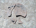 Micaceous light orange fabric with white inclusions. Black stain on exterior (from burning?)
