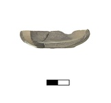 | Description: | Small pyre saucer. Mended from two fragments. About one third of rim and wall missing. Flat base with string marks. Slightly incurved rim. Unglazed; burnt. | |