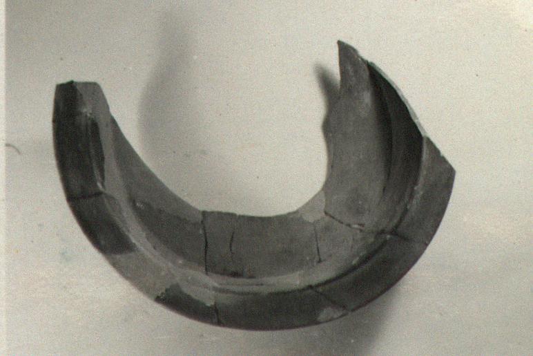| Description: | About half remains. Restored in plaster. Bulging bottom; almost vertical side wall; broad flaring rim with a slight ridge around its inner edge to hold the lid. No trace of handle. Cf. Agora XXXIII, no. 669. | |