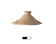 | Description: | Eight joining fragments; ca two thirds of rim missing. Conical lid with flaring knob. Slight traces of burning on inside. Unglazed, Attic fabric. Small fragments of a lopadion in lot Φ 218. | |