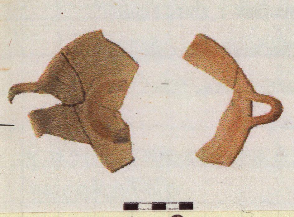 | Description: | Two non-joining sections: a) four fragments, preserving about one quarter of rim, half of a handle, full profile and over half of base. b) two fragments preserving handle and one quarter of rim. Slightly convex base with string marks. Slightly flaring wall with wheel marks. Plain rim. Horizontal strap handle attached to rim. Dull orange wash in a band around rim and in circle on floor and on handles. Attic fabric. | |