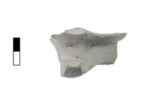 | Description: | Fragment preserving portion of body and rim and handle stump. Wheelmade; thin-walled. Fabric fired gray, close to 10 YR 7/1 and 7/2. Middle Helladic. | |