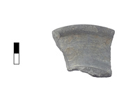 | Description: | Fragment preserving portion of hollow base and stem. Wheelmade, with possible ring at juncture of base and stem. Fabric fired gray, close to 7.5 YR 6/0-5/0. | |