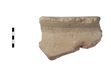 | Description: | Large fragment preserving small portion of rim. Everted rim, flat on top. Handmade. Coarse red clay, with traces of off-white slip. Clay: light red 2.5 YR 6/8; slip: pink 5 YR 8/3. AS 1083 | |