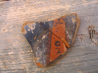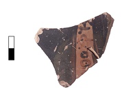 | Description: | Two joining fragments, broken all around. Body sherds of a Panathenaic Amphora with vertical inscription ΑΓΩΝΟΘ. in reserved band (column). Pale pink clay, molted dull black glaze, diluted for the inscription. Cf. Hesperia 26 (1957), p. 331. | |
