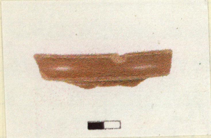 | Description: | Rim sherd of closed vessel (or cup?). Flanged rim. Pinkish-red ware; deep red gloss (late series), lustrous on interior. Context and date of object: early 2nd c. A.D.? | |