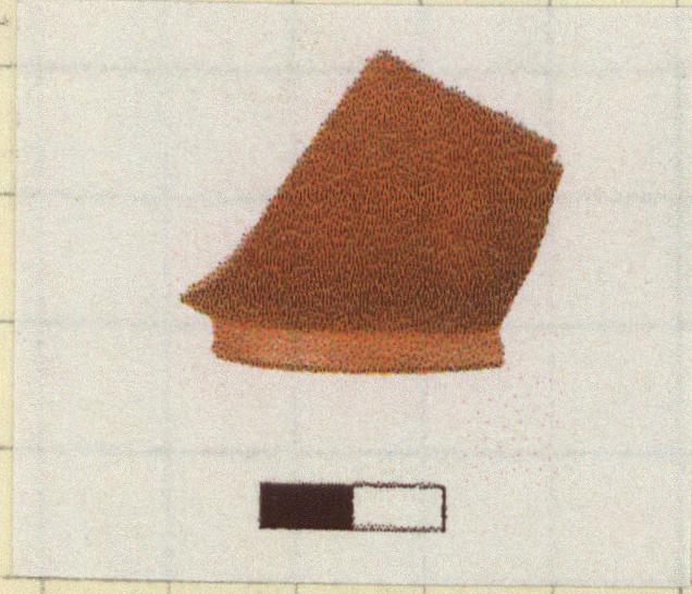 | Description: | Base fragment of a small closed vessel (jug?). Terra Sigillata Africana A/C: thin-walled, clean-breaking, with glossy red slip on outside. Early to mid 3rd century. | |
