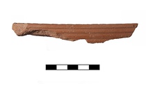 | Description: | Rim fragment. Large version, with coarse rouletting on rim. Fairly clean-breaking ware with polished internal slip (cf. ware of LRP form 88). Date of context: 7th c. (Probably mid-5th c., residual) | |