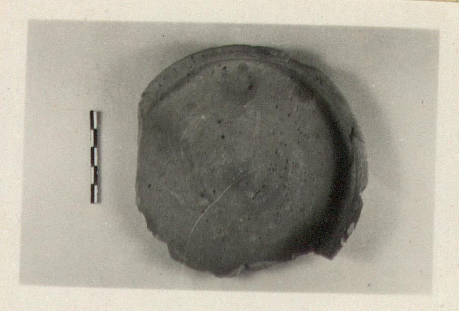 | Description: | About half the rim missing; one small fragment joins; ohterwise intact. No base; the bottom flat and rough. Low rim, slightly rounded at the top. The glaze thin and dull. | |