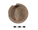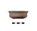 | Description: | Complete but for three chips at the rim. Mended from two large pieces, and a piece of rim. Flat slightly raised base with string marks, bulging wall, flaring rim with small inset for a lid. Unglazed, sandy brown fabric. | |
