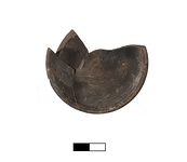 Description:   About two-thirds of saucer preserved. Mended from three fragments.
