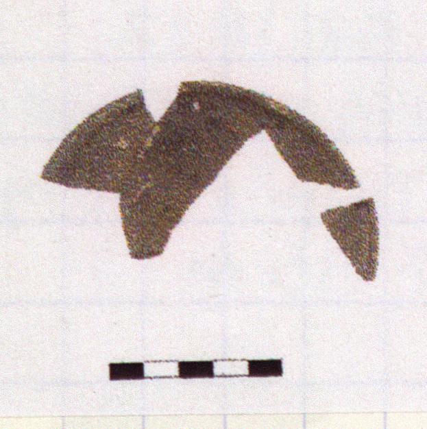 Description:   Shallow pyre saucer, mended from four pieces with one non-joining rim fragment. About one-third of rim preserved.