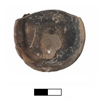 | Description: | About two-thirds preserved. Spalling in the center and a modern scratch. Glaze worn. Shallow bowl, convex wall. Underside slightly concave with string marks and bits of extraneous clay attached to the underside (hastily manufactured). Red/yellow fabric, dull brown/black glaze. | |
