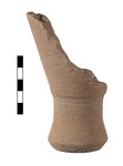| Description: | Single fragment preserves more than half of toe, with part of lower body. Reddish brown fabric with darker slip, micaceous, with dense packing small to medium pale gray glassy bits. 5 YR 6/6 Fabric. Flaring hoof-shaped toe, inset from body, with conical hollow beneath. | |