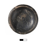 | Description: | Small bowl. Intact except for chip at foot. Slightly angular foot with flat resting surface and very shallow nipple on underside. Lightly scraped groove at base of wall. Thickened rim, sloping inwards. At least three letters inscribed on underside of foot. Pinkish buff fabric; completely glazed except for thin line on resting surface of foot. Cf. Agora XXIX, nos. 1027 (P 26013). 4th c. B.C. | |