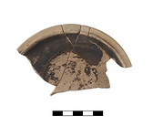 | Description: | Mended from four fragments, less than half preserved. Glaze very worn on rim exterior. Low, broad foot, flat resting surface. Convex wall with offset above foot. Narrow rim, concave on top with interior ridge. Micaceous pale buff clay. Dull brown-black glaze all over except top of rim. Cf. Agora XXIX, nos. 816, 817 (P 28889, P 6217). | |