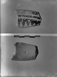 | Description: | Fragment from a large Geometric lid, decorated outside with tooth pattern. Inside, a damaged graffito: <graphic> | |