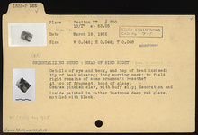 | Description: | Head of bird right. Details of eye and beak, and top of head, incised; tip of beak missing. Long curving neck; in field right, remains of some ornament: rosette? At top of fragment, band of glaze. Coarse pinkish clay, with buff slip. Decoration and inside painted in rather lustrous deep red glaze, mottled with black. Orientalizing Style. | |