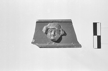 | Description: | From a vertical rim with a projecting edge at top and at bottom. Just below the top inside, a groove. Female head, with a heavy roll of hair over the ears. Good red glaze inside and out. Western Sigillata. | |
