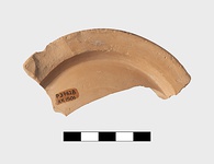 | Description: | Single fragment preserving about one-quarter of the original circumference of the foot. Flaring ring foot with broad, flat resting surface, convex on top; wall flares out slightly. Slightly metallic black glaze on exterior. Reserved: interior and underside. Thin added purple line on exterior face of foot. Attic clay. | |