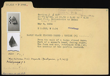 | Description: | From the wall of a large closed vase. Part of a woman's head, facing right (Sphinx?). The face and ear retouched with red; the contour of the profile incised. | |