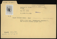 | Description: | From a very late Panathenaic amphora. The fragment depicts a head with the details crudely gouged out. Hellenistic. | |