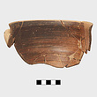 | Description: | Part of the upper portion of a large kylix, glazed inside and outside below, with pendent lines from the horizontal handle. Above, three compass-drawn circles with a zigzag below the lines around the rim. | |