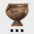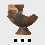 | Description: | Most of one side missing. Conical foot. Glazed on inside and out. On the rim, narrow zone of zigzags in dilute glaze. Reserved dot inside. | |
