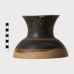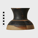 | Description: | The neck and shoulder, fragmentary, of an open-mouthed vase, probably of hydria shape, black-glazed with reserved lines at the base of the neck, and a reserved band below the shoulder decorated with zigzags in dilute wash. | |