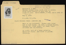| Description: | Part of rim preserved. Broken away below and on both sides. At left, a winged figure, (gorgon?), flees right; the head, right shoulder and leg missing. At right, part of a large palmette. White for flesh, red blobs on garment, incision. ADDENDA CHC Group or near (JDB Summer 1953). | |