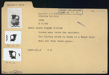 | Description: | Broken away below the shoulder. The flaring mouth is drawn to a blunt beak. Dull but firm black glaze. | |