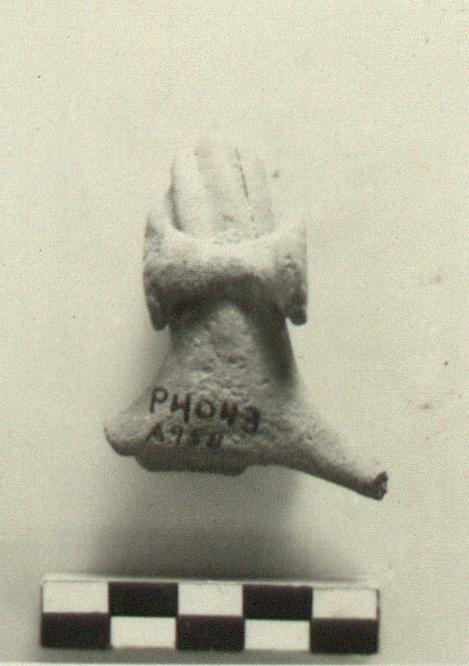 | Description: | Fragment of single twisted handle surmounted by rotelles. Gritty red clay. Cf. Agora XXXIII, no. 581. | |