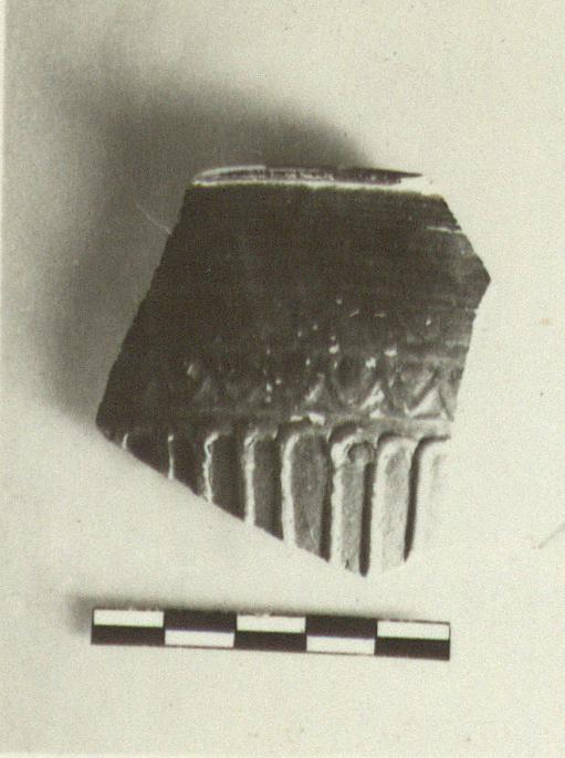 | Description: | Rim fragment. Egg-and-dart pattern in upper zone. | |