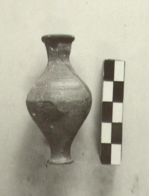 | Description: | Mouth and much of side wall restored in plaster. Very plump. One band of white paint on the shoulder. Hard red clay, fired gray on the surface. Thin-walled and carefully made. Cf. Agora V, under no. F 48. Cf. Agora XXXIII, no. 412. | |