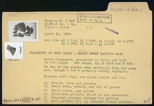 | Description: | Seven fragments, decorated in white and buff on red glaze. For shape cf. P 4159 and P 529. No two of the pieces come certainly from the same pot, though a) and b) probably belong together. a) Wreath, dots and grooves. b) Small dots, wreath, and bit of groove. c) Small blobs, and groove. d) Uncertain pattern. Start of rim. e) Diagonal strokes between two grooves. f) Leaf pattern(?). g) Debased floral pattern. Pinkish buff clay, red glaze inside and out. | |