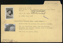| Description: | Mended from ten pieces; the profile complete. The rim decorated with a row of vertical grooves, the center, inside, with a stamped conventional motif. Red clay and glaze, worn. Late Roman C. | |