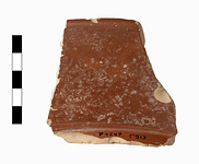 | Description: | Part of the rim of a large deep bowl; wide flat horizontal rim, rolled on its outer edge. Yellow clay, red glaze. Pergamene Ware. | |