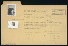 | Description: | Broken away below. The end of the beard chipped. A head with a long projecting beard, above which the letters ΕΚΑΤΑΙΟΥ. Coarse brownish clay. | |