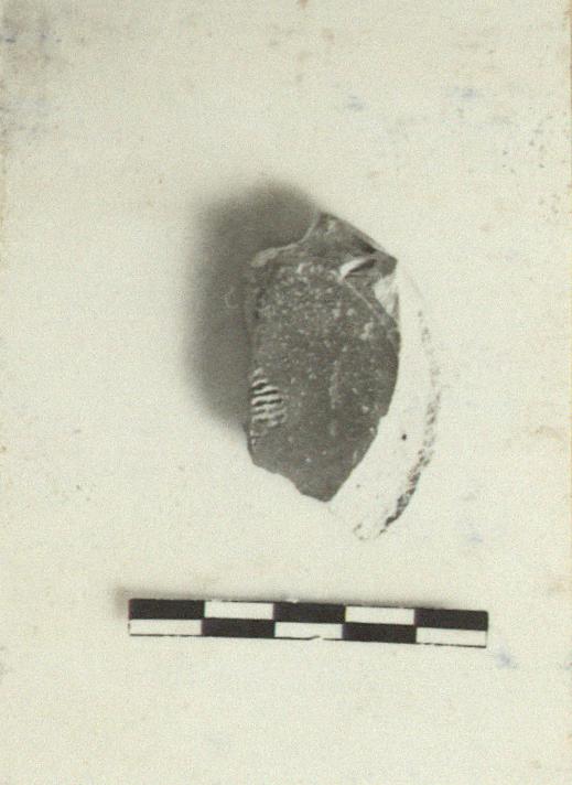 | Description: | Preserved is only ca. one-half the base of a small steep-sided Samian A cup. Low, rather narrow foot ring, rounded in section. In center, inside, part of a pattern made of deep parallel grooves. Pinkish, slightly micaceous clay, laminated at break. Dull orange-red glaze inside, orange outside and on bottom. | |