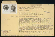 | References: | Publication: Agora XXIII Publication: Hesperia Suppl. 2 (1939) Publication Page: Agora 23, s. 272, p. 256 Publication Page: Agora 23, s. 357, p. 341 Drawing: DA 10596 Image: 2012.23.0245 (5-86) Deposit: G 12:1 Lot: Β 370 Notebook: Β-7 Notebook Page: Β-7-33 (pp. 1239-1240) Card: P 4602 |