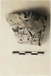Description:   Polos-style amphora fragment mended from two pieces. Part of the lowest animal frieze, with rays below. Siren to right; incised rosettes in field.