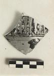 | Description: | Outside, below rays, man's head left, and part of another in front of him. Inside, alternating black and reserved lines. Joins P 4746g. | |
