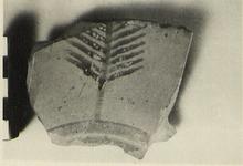 | Description: | Fragment of a flat plate with high ring foot. On the inside, around the center, two bands of thin reddish brown glaze; springing from the center, a conventionalized tree. ADDENDA This ware is common at Delphi and presumably came from that general region. About 6th. c. A.D. (JWH). | |