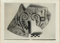 | Context: | Brown earth under road fill. 36-39/road test cut. Second fragment from N.E. corner of cemetery, layer II, stone packing in corner. | |