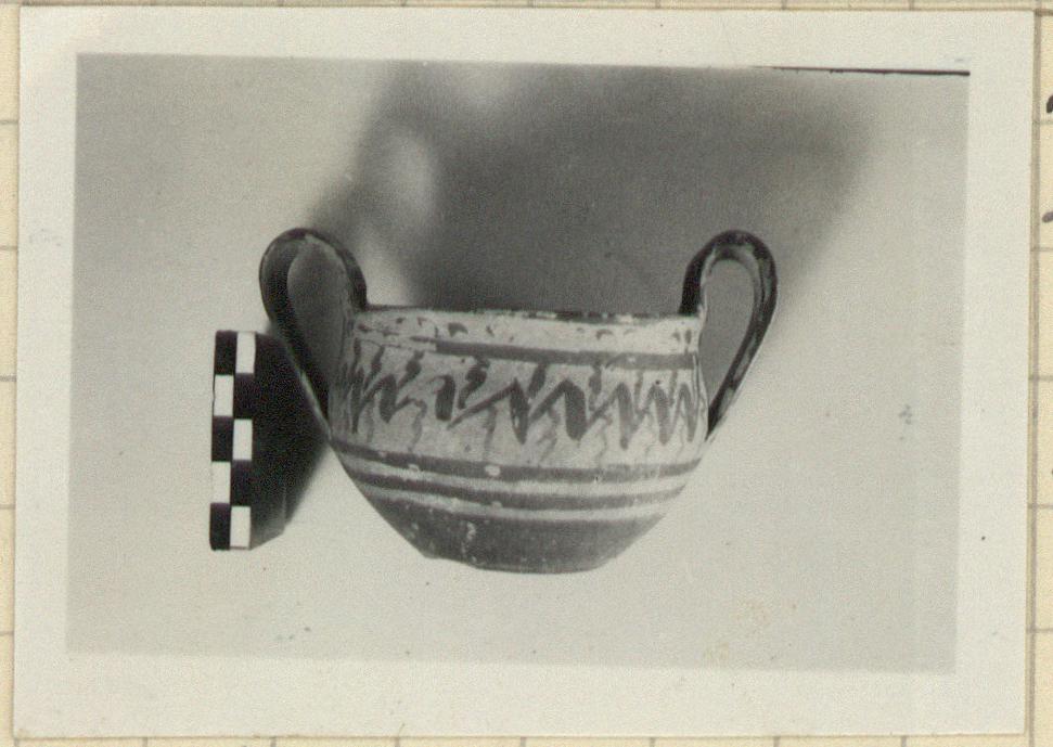Dimensions:   Diam. 0.09; H. (w/handles) 0.08, (at rim) 0.06